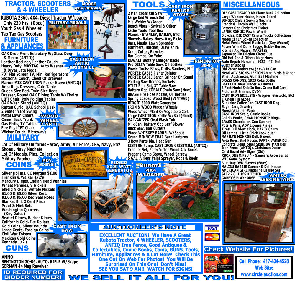SEE YOU SAT 9 AM!! WATCH FOR SIGNS!!GO TO BOTTOM OF PAGE AND CLICK ON AUCTION PHOTO'S