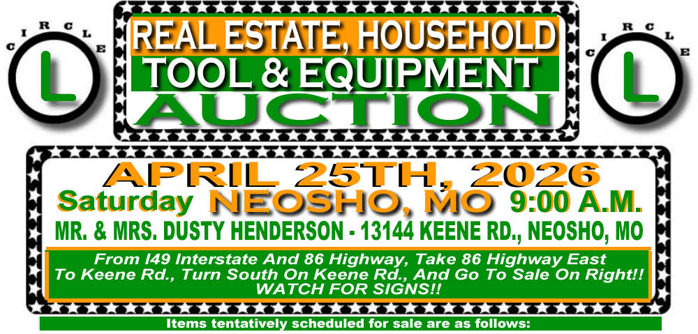 REAL ESTATE, HOUSEHOLD, TOOL & EQUIPMENT AUCTION!!!